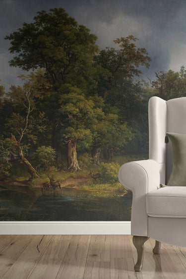 Vintage Woodland Landscape Mural | Wild Green