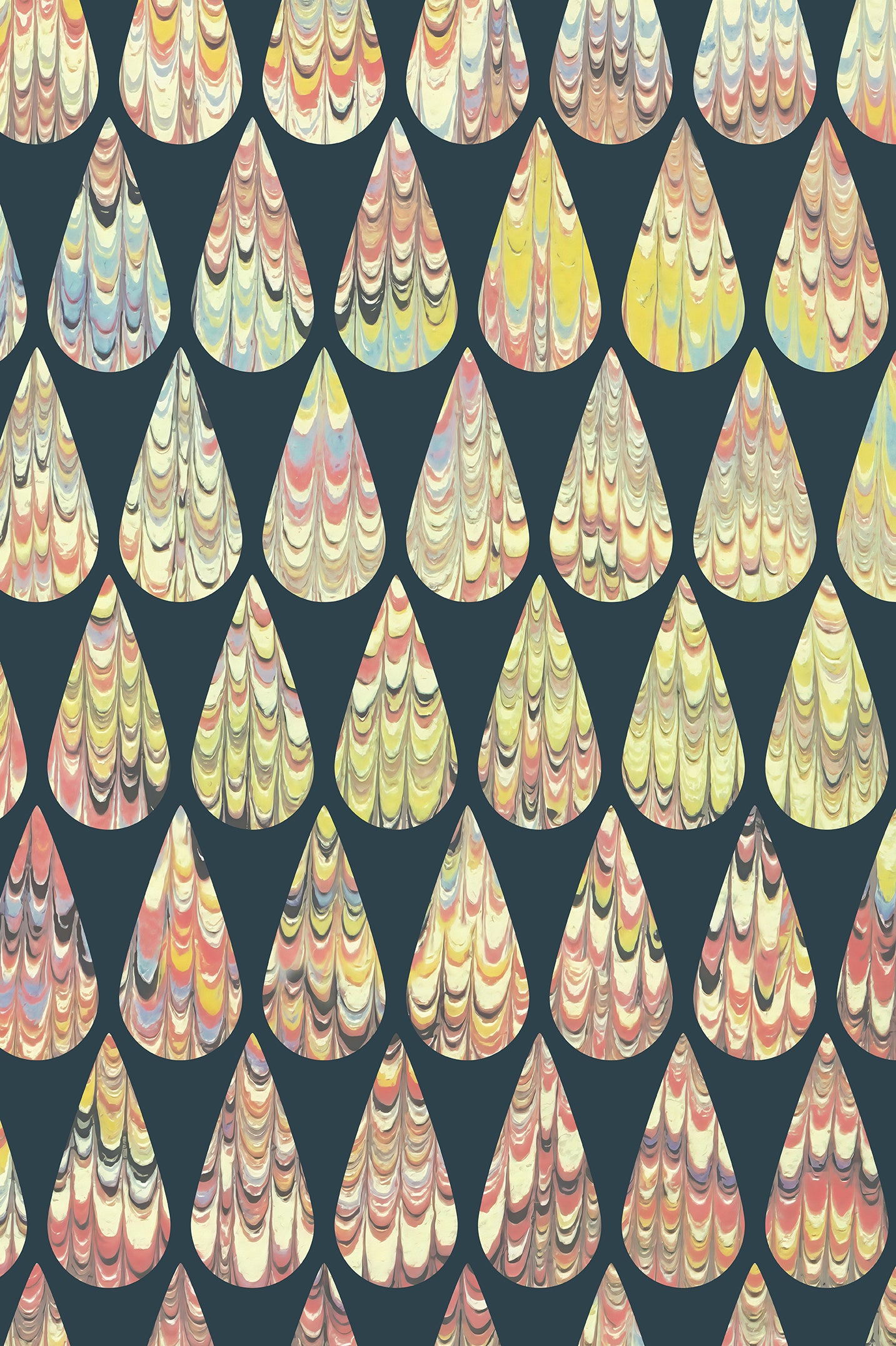A bold yet playful wallpaper featuring hand-painted waves arranged in a rhythmic teardrop pattern. Set against a dark background, this design adds character, depth, and a modern artistic edge to statement walls. Custom wall sizes and pattern adjustments available.