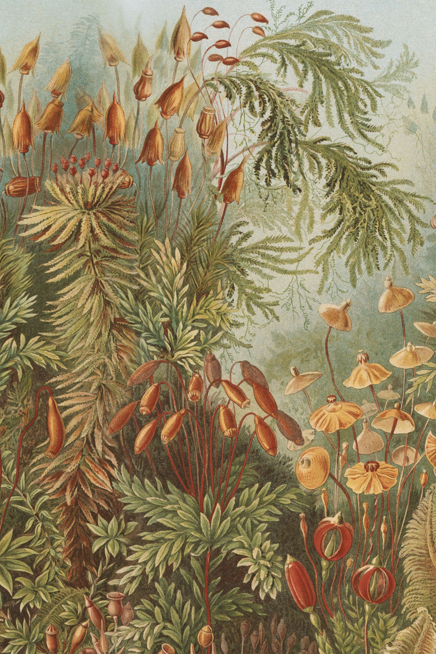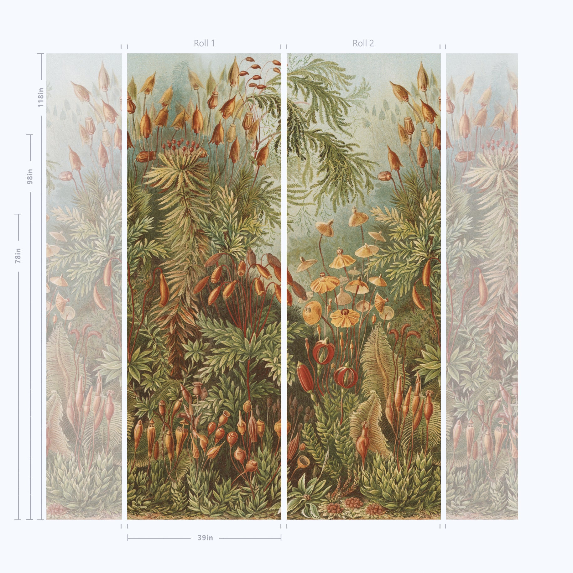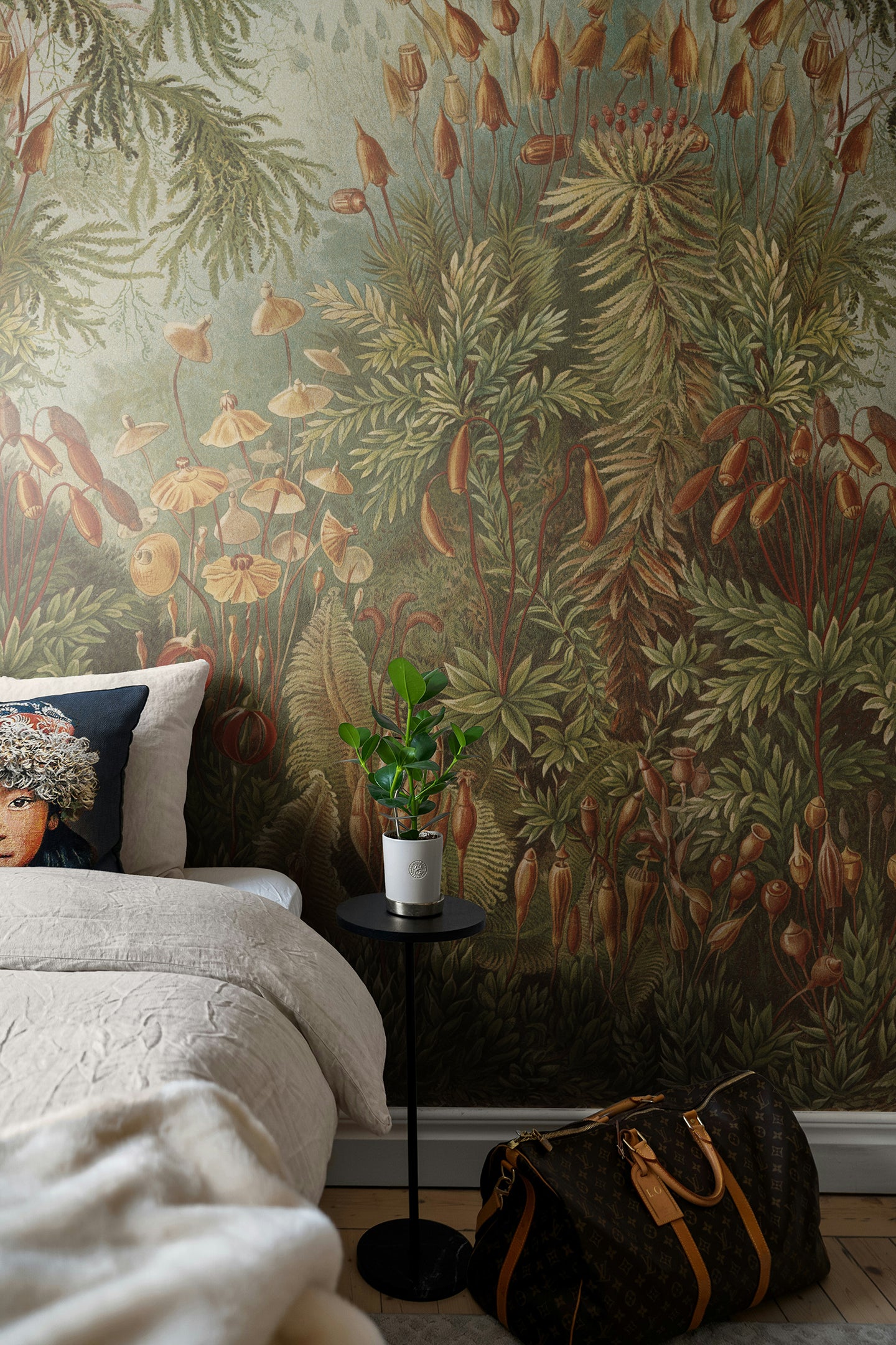 The vibrant full-color edition of our exotic botanical mural, bursting with tropical greenery and rare plant forms. A statement piece for bold interiors, sunrooms, dining rooms, and nature-inspired spaces. We offer custom sizes to perfectly fit your wall.