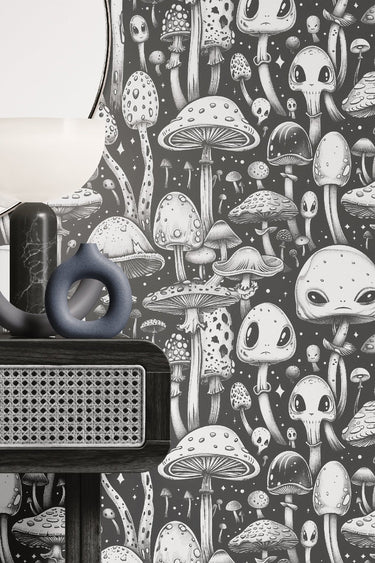 Elevate your space with our Alien Mushrooms wallpaper. Choose from four stunning color variations and enjoy customizable pattern and wall sizes for a truly unique look. Transform any room into an otherworldly oasis.